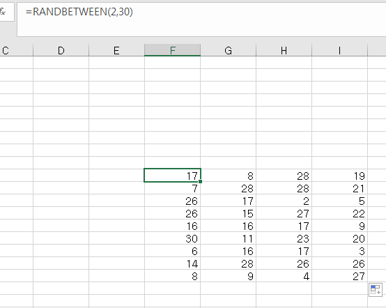 - 선택한 범위에 무작위 값이 생성됩니다.